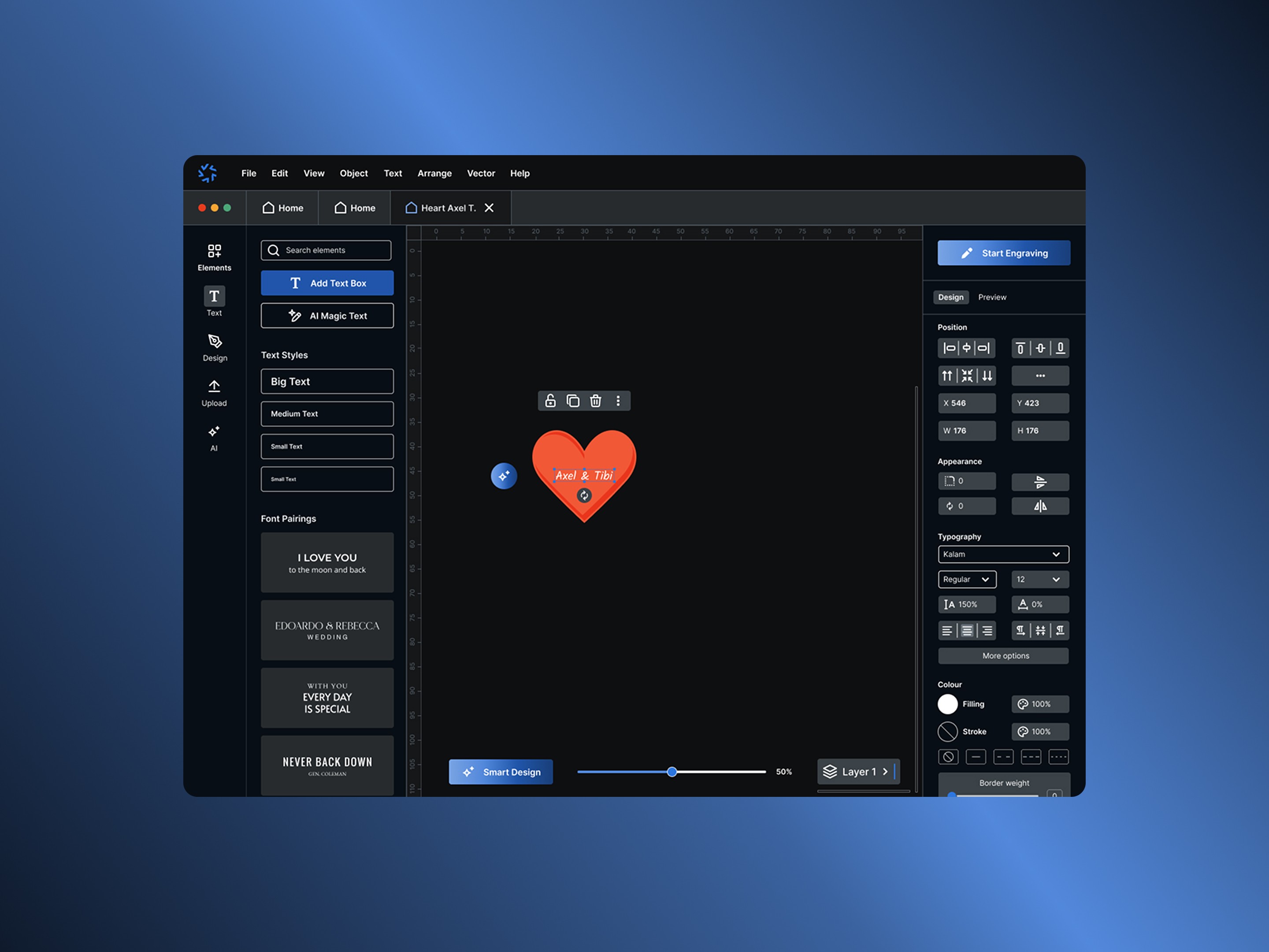 This reduces the barrier to entry for non-designers while maintaining professional output quality. The feature was inspired by similar text-to-image tools but optimized specifically for laser-compatible vector graphics.