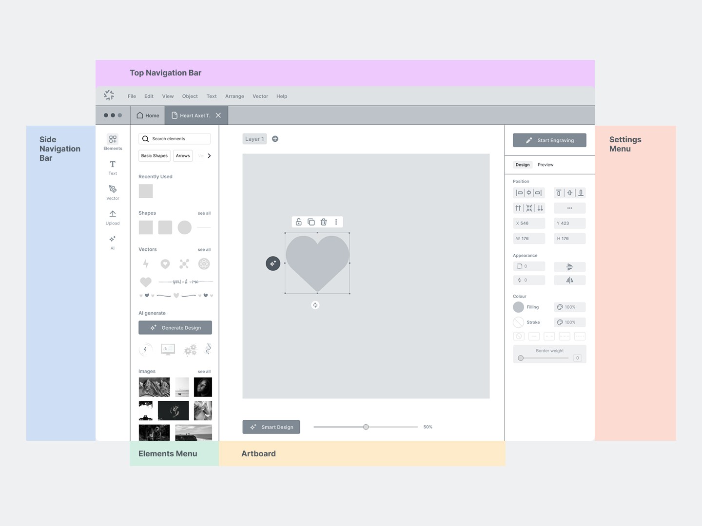 I mapped the user's job-to-be-done: "I need to create a design and send it to the laser to be engraved."
