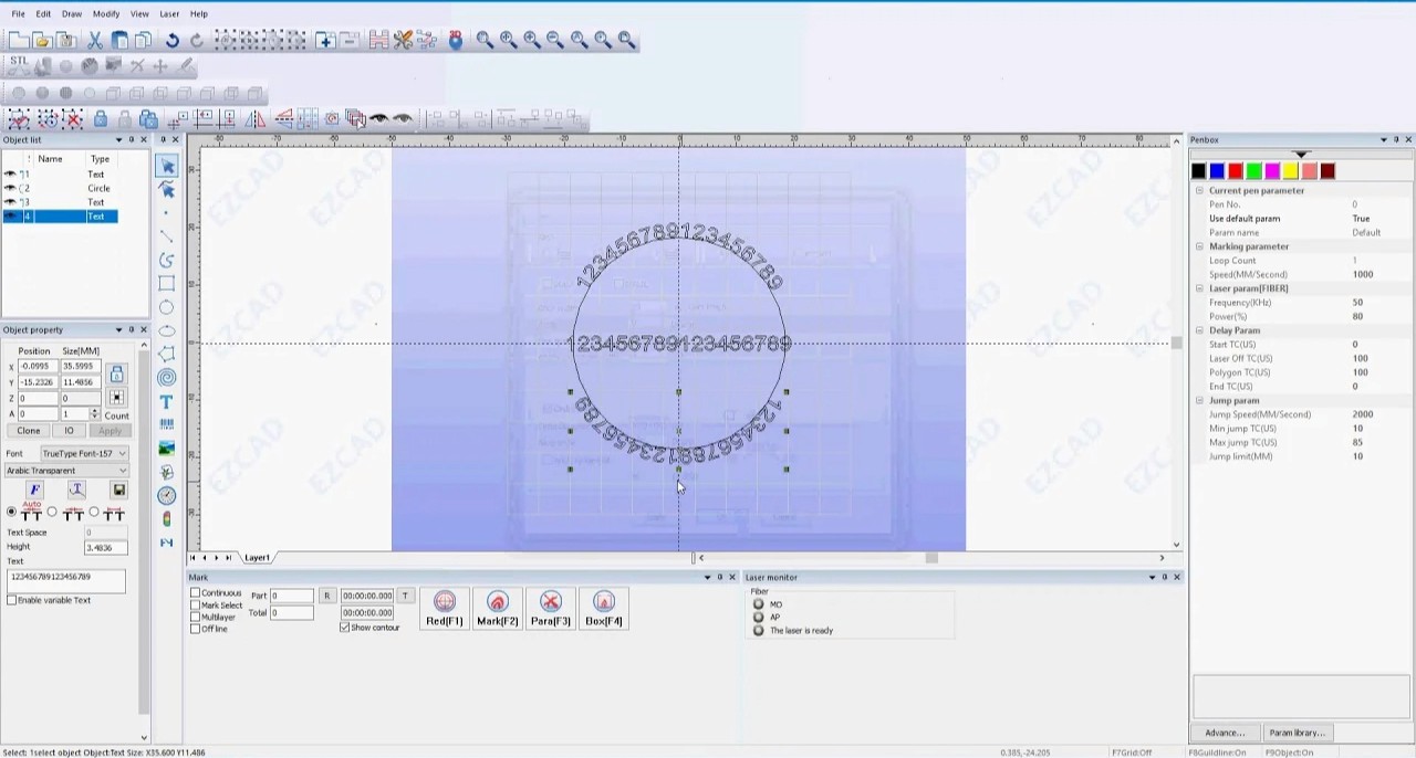 Configure & execute: Set laser parameters and run the job
